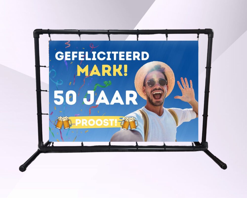 Je kunt bij ons terecht voor een spandoek verjaardag dat volledig naar jouw wens is gemaakt. Je kunt kiezen voor een eigen ontwerp met een grappige foto, een persoonlijke tekst of een herkenbare quote die typisch is voor de jarige man. Wij verzorgen het spandoek in hoge kwaliteit zodat het weerbestendig is en de hele of week buiten kan blijven hangen. Het is de perfecte manier om de buurt in de Achterhoek te laten weten dat er een feestje is.