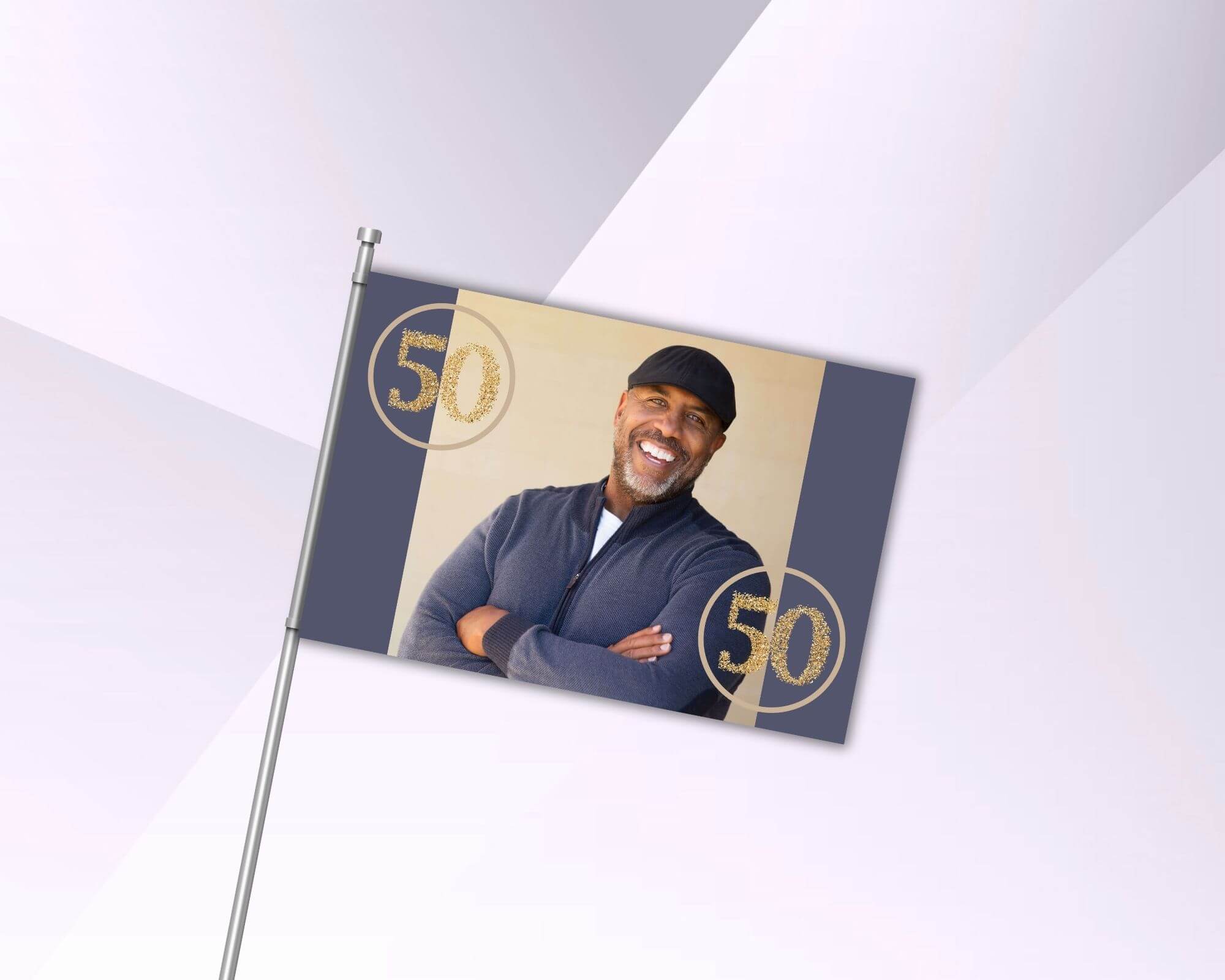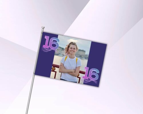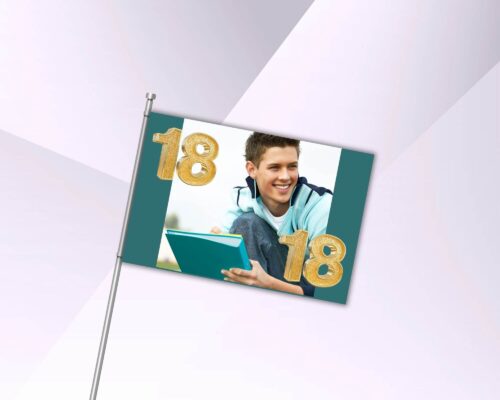 Op zoek naar een originele manier om een verjaardag te vieren? Kies voor een verjaardagsvlag, eens wat anders dan een spandoek! Personaliseer het met een mooie foto (in hoge resolutie) en een achtergrond kleur. Natuurlijk ook de leeftijd van de jarige en maak van de dag een onvergetelijk feest. De vlag is 150×100 cm, dus lekker groot.